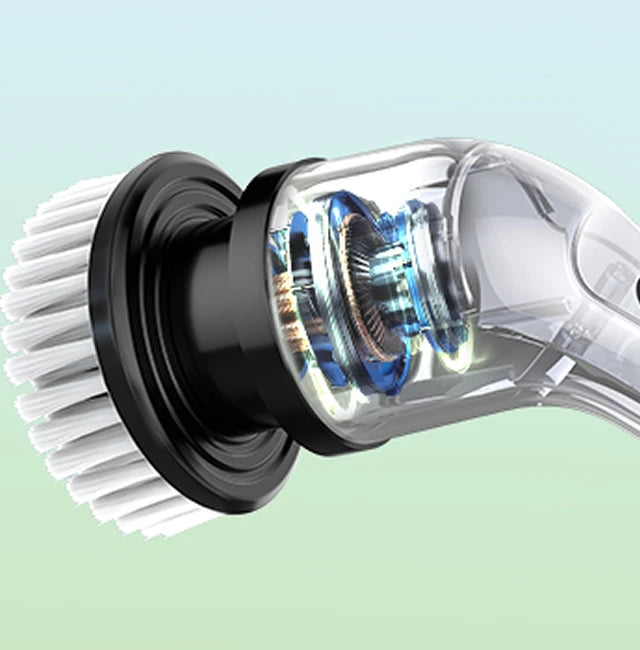 Shaft power is the most effective parameter to measure electric brushes. It can not only clean hard kitchen stains and oil stains, but also clean more types of dirt in the bathroom. Can improve cleaning efficiency by 45%.