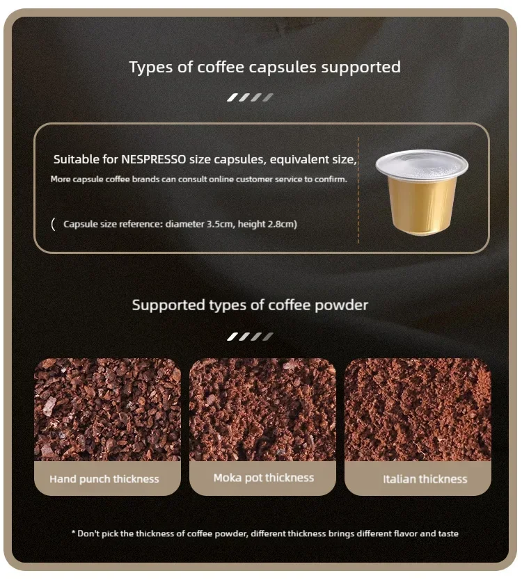 Portable Espresso Coffee Machine KFJ-1S-S1201C1 20Bar High Pressure Capsule/Ground Dual Extraction Travel /Office